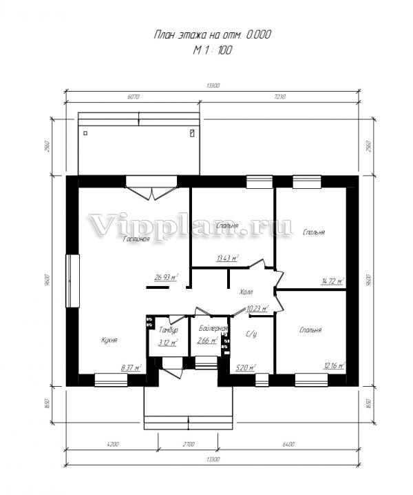 | Размеры дома: | 13.3м×9.6м |