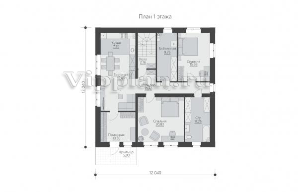 | Размеры дома: | 12.04м×12.04м |