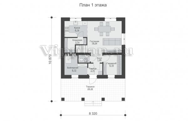 | Размеры дома: | 10.87м×8.32м |