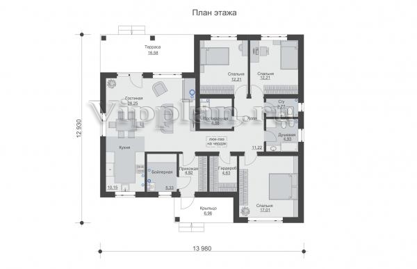 | Размеры дома: | 12.93м×13.98м |